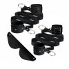 El kit contiene un par de muñequeras y tobilleras con correas para atar y una venda negra para los ojos. Esposas y tobilleras confeccionadas en sintético símil piel y forro interior aterciopelado. Ajustable y regulable según tus medidas de muñeca y tobillo para garantizar comodidad, fácil acomodación y correcto uso del accesorio. Sus correas son de poliéster con aro metálico, asegurando resistencia, además de tener el tamaño ideal para trabar y brindando diferentes posiciones para cumplir todas las fantasías. Detalles de hebillas, broche y cierres en metal niquelado que confirman calidad y durabilidad. Venta artesanal en sintético similar al cuero en color negro, con revestimiento aterciopelado que garantiza comodidad y perfecta adaptación al rostro.