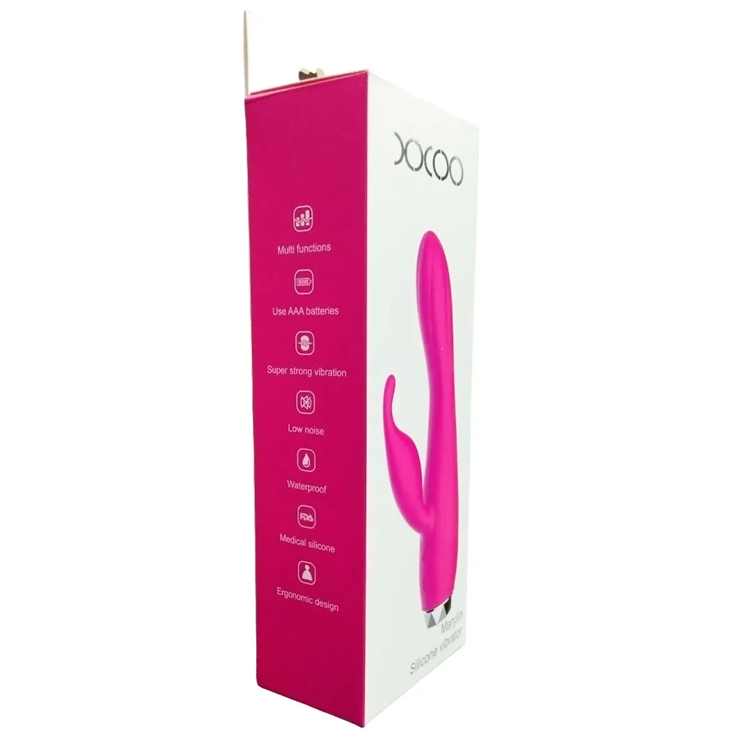 Si deseas experimentar placer y sensaciones celestiales, el vibrador Marylin te ofrece lo último en estimulación de clítoris y punto G. Su silicona suave y sedosa se adapta a la perfección a las capas de tu cuerpo, permitiéndote tener una experiencia inigualable. Su motor dual esta diseñado con un eje perfecto para acariciar delicadamente tu punto G mientras su otra parte acaricia tu clítoris, haciendo que logres un orgasmo explosivo.